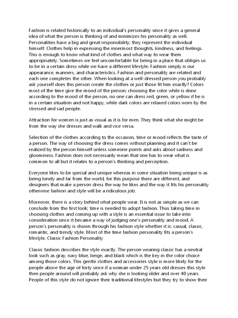 Essay Fashion Defines A Person Character Fashion Defines A Person Character The First Studocu